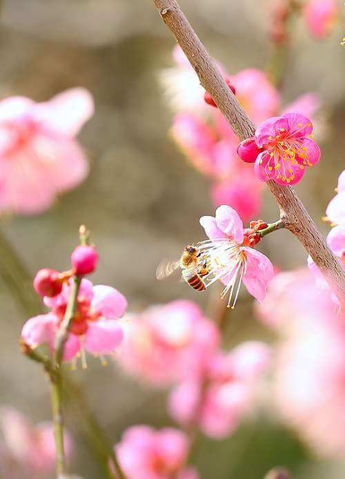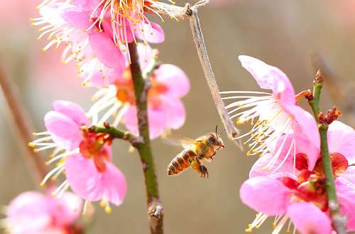 ミツバチたちも梅の香りにつられて???。 おいしそうに花の密を吸い上げていましたよ。