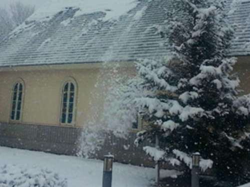 屋根に積もった雪が