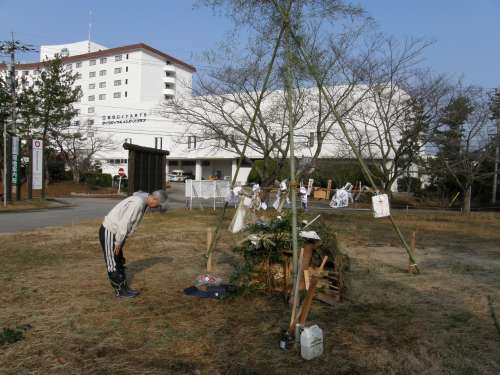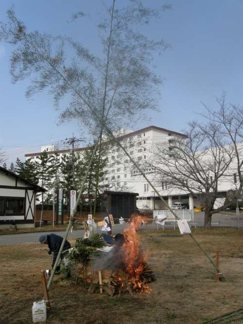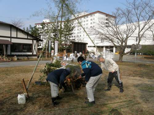 能登現(xiàn)地案內(nèi)所前にて、新年の恒例行事 『左義長』を行いました。
