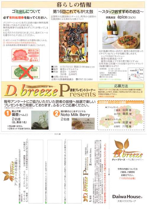 また、バックナンバーご希望の方は?D.ブリーズ バックナンバー希望?とご入力ください。