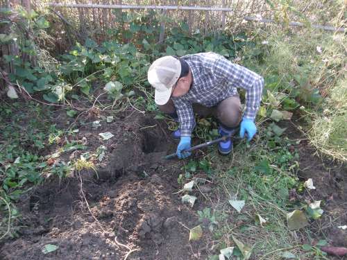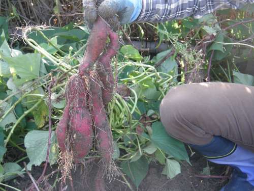 N様を訪ねると、裏の家庭菜園サツマイモ掘りをされていました
