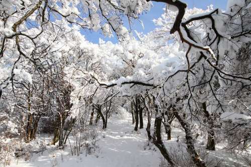霧島市の國分平野では、 既に梅の花が咲いています。 しかし、 立春とは名ばかりの寒さ? 霧島連山では、 冬の名殘りがなかなか去らず春はしばらくお預(yù)けの日々が続いています。 2月11日、 霧島の山並みは雪景色。 そこで、 高千穂峰が望める高千穂河原から中岳へ向かう遊歩道を歩いてみました。 シーンとした空気の流れる音の中、積雪した遊歩道をサクッサクッと音を立てて、ひざ下まで積もった深雪を進(jìn)みます。 白銀のそれは澄んだ空の青が一段と輝かせます。 見渡す限りの雪景色は、 日頃見慣れないせいか、季節(jié)の中では最も美しい眺めかもしれません。 木立にかぶった雪は、 今にも折れそうなほど激しく揺さぶられ、太陽の光を浴びてサラサラと滑り落ちて軽やかに溶けていきます。