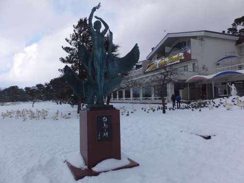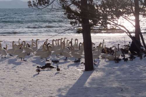 夕暮れ時の靜かな志田浜で、何も考えずに湖畔と白鳥を眺めながら過ごすのも心地良いひと時です