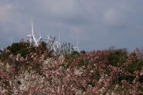 ここ佐田岬半島では、大和エネルギーの9基の風車を含め、