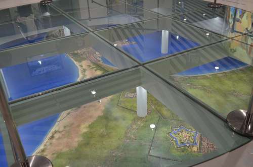 2014年は、五稜郭タワーが誕生してから50周年に當(dāng)たる年。さまざまな記念企畫の一環(huán)として、展望室へ上るエレベーター前の床下に大きな函館のジオラマが設(shè)置されました。よく見ると現(xiàn)在の函館ではなく、五稜郭建造當(dāng)時の姿を再現(xiàn)していることがわかります。
