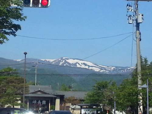 遠刈田溫泉街のメインストリートから見える