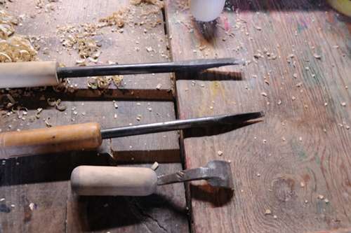 木を彫り上げるとサウンドペーパーで磨いたり