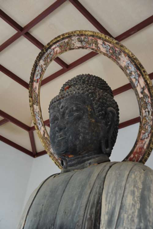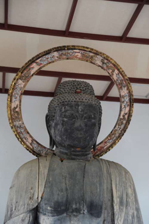 近づいて良く見ると阿彌陀如來像の頭の周りの光背