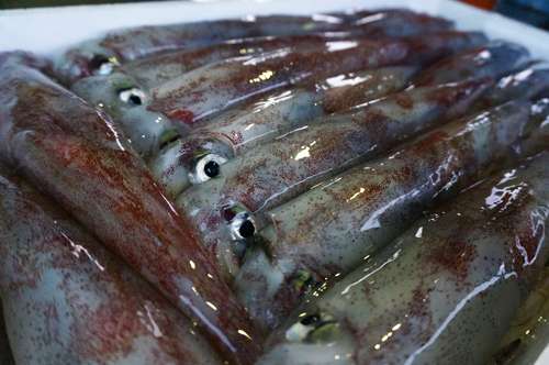 イカの女王こと、今が旬の白イカ。漁師さんの言う通り、量が少なく遅れ気味のようです。
