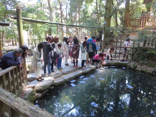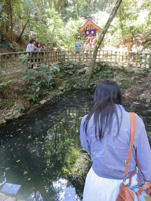 素戔嗚尊スサノヲノミコト(スサノオ、スサノヲ、スサノオノミコト)と 稲田姫を主祭神とされています。 占いの場は奧の院鏡の池 橋を渡って 靜かな森の中です 飲用水と姿見として使われた池のようです やはり人気があるようで多くの人が占っています。 100円か10円硬貨を紙に載せて池に浮かべます。 心配そうに行方を見る娘。親の方がもっと心配なんですよ。 本當(dāng)に水面が鏡のように映していますね。 縁結(jié)び占いは、浮かべる半紙からお告げの文字が現(xiàn)れ、 紙が遠(yuǎn)くの方に流れれば遠(yuǎn)くの人との縁が 早く沈めば早く縁づくといわれています。