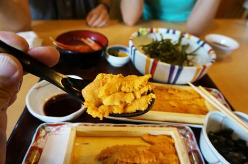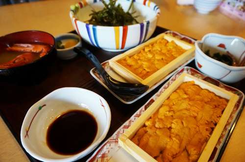 新鮮で美味しいウニの板が2枚。不思議と平素な一日が特別な日に思えてきます。