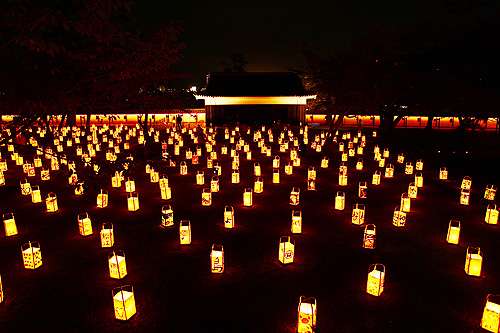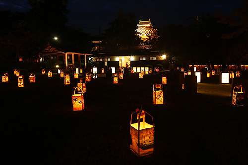 街中に浮かび上がる松江城を中心に、そのお堀端などが行燈でライトアップ。 塩見縄手を照らす400個の行燈、堀川遊覧船夜間運航、手作り行燈展、宵屋臺といった催しも行われ、水の都?松江の新しい一面を垣間見ることが可能です。