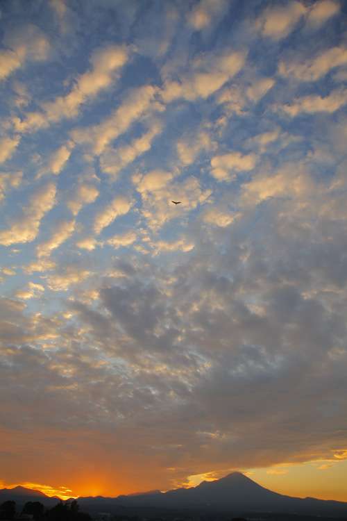 朝晩の冷え込みに秋の訪れを感じますが、そんなある一日、日野川沿いから大山の朝焼けを観賞していると、こんなにも神秘的な風景に遭遇しました。 大山を真っ赤に照らす朝日のパワー。まさに火乃神岳の名前にふさわしいはじまりの風景でもありました。見上げれば空全體に広がるうろこ雲。秋は確実にやってきているんですね。