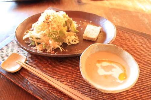 味噌やドレッシングなど、全ての料理に使う調味料も手作りで、豆乳から手作りするごま豆腐も好評です