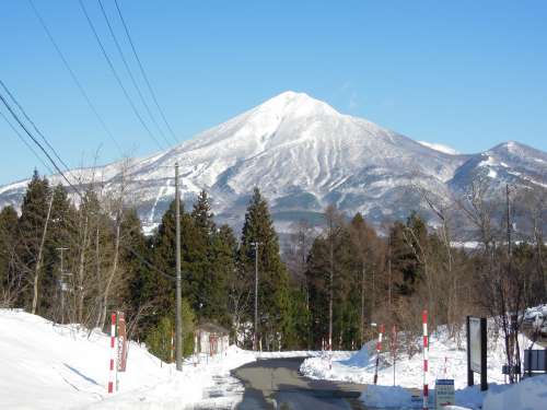 現地豬苗代ヒルズから磐梯山を望む(平成27年12月撮影)