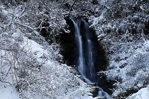 大雪舞う鳥取県南西部にある日南町。 町のはずれ、森の奧深くを進(jìn)むこと30分。 雪のトンネルをくぐりぬけた先に見える秘境の世界に つい言葉を失ってしまいます。 雪のフレームに囲まれたなかを豪快に流れる権現(xiàn)滝。 寒さを忘れる感動の時間です。