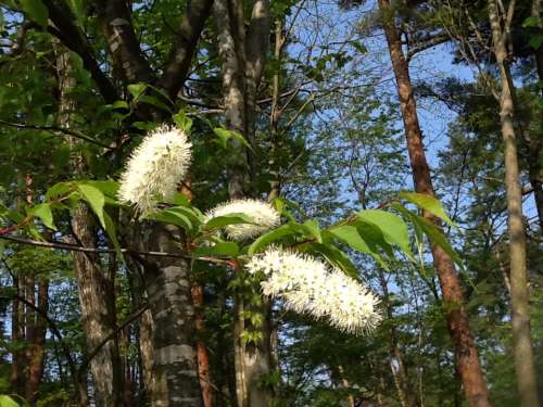 4~5月に葉が開き、枝の先にブラシ狀の花を付けます。 花は白く、多數(shù)で密に咲くのが特徴。
