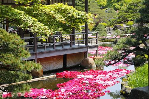 島根県を代表する観光名所でもある大根島の由志園(ゆうしえん)。 島全體が牡丹の花で彩られる春が特にオススメで、ここ由志園はそのランドマーク的存在。 4月11日より「牡丹園遊會」と題したイベントを開催し、県內(nèi)外の多くの見物客で賑わいます。 稀少100品種が園內(nèi)に展示されるほか、みなさんの一票で決まる牡丹グランプリ投票、ハイブリッド牡丹園などなど盛りだくさんの內(nèi)容が魅力的。 そんななかで花好きならぬとも多くのみなさんにオススメしたいのが、4月29日~5月6日までのGW期間中に実施される「池泉に浮かぶ三萬輪の牡丹」で、寫真のように雅な日本庭園に囲まれた池が牡丹の花で埋め盡くされるという日本一の牡丹の里ならではの演出が見事。 思わず歓聲をあげてしまうスペシャルウィークならではの仕掛け。 この春、必ず見ておきたい風(fēng)景の一つです。 ほか、園內(nèi)にはフジやツツジなどの春の花も満開でお迎え。 和の美しさを感じながら、春の時間をゆったりと過ごしてみてはいかがでしょうか? 寫真はすべて別荘地から約36.8km。平成26年5月3日撮影。
