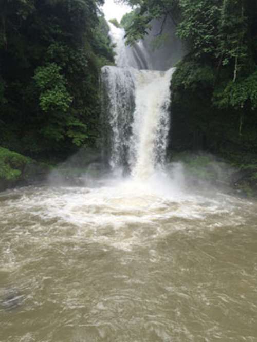 天瀬町と玖珠町のちょうど境にある「慈恩の滝」に 行ってきました 2段落としのの滝で、豊かな水が細かいしぶきをたてながら 流れる様が勇壯。 と聞いて行ってみたのですが、先日の大雨の影響で水量が多く ゴゴォーという大きな音の迫力で圧倒されてしまいました