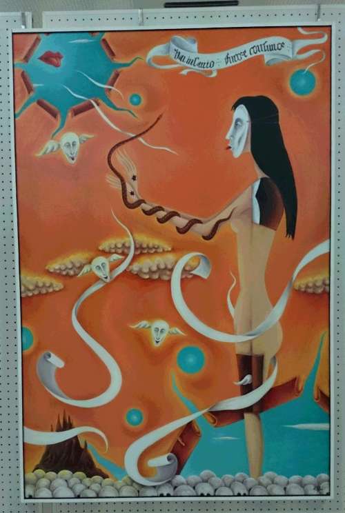 タイトルは“荒野幻想-「エバの罪Ⅱ」”で、サイズはP-80號の作品です。
