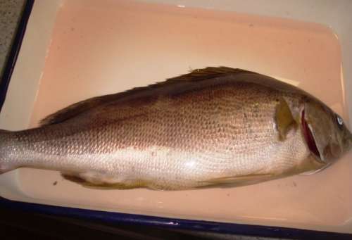 ◆卓球つながりで、Tおじちゃんが、お向かいの釣り名人に もらったのを、「お孫さんに」と分けてくれました。 差し入れのジャンボイサキ、こんなんもいつか、釣ってみたいなあ!