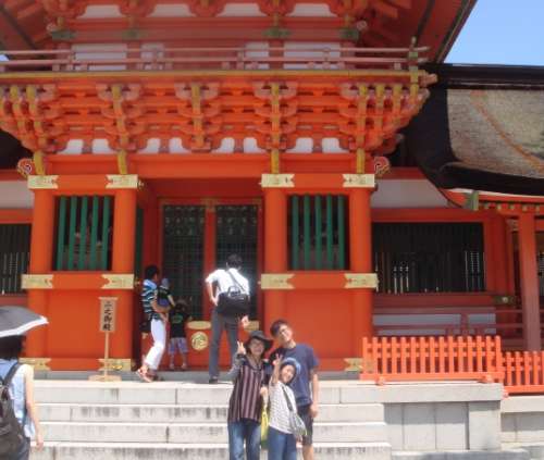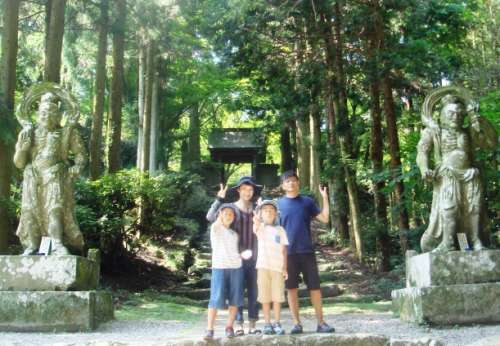 ◆両子寺(ふたごじ)の阿吽仁王像前で記念撮影。國東では一番紅葉が早いですよ。
