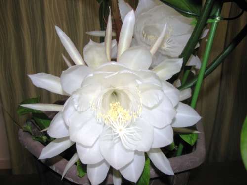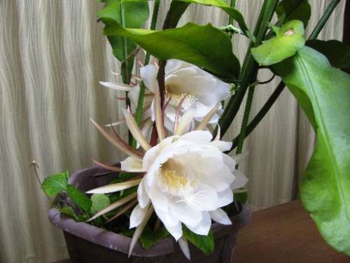 蓮の花じゃありませんが、深夜にポンっと音がして、甘い香りに包まれる一夜限りの花といった話をよく聞きますが、この月下美人は、