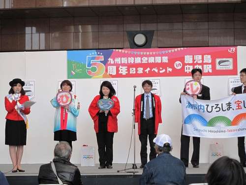 2011年3月11日14時46分、 東北地方太平洋沖を震源とした地震 『東日本大震災』が起こりました。 そして、その翌日の3月12日に、「九州新幹線」は全線が開業しました。 沿線の駅では、 震災を考慮し企畫されていた開通式典やイベントを自粛してのスタートでした。 あれから5年が経った3月12日、 「九州新幹線全線開業5周年」を記念する イベントが沿線各駅で開催され、節目を祝いました。 鹿児島中央駅のアミュ広場では、 JR九州の列車內で販売されている限定グッズや、地域の特産品のブースが出展。 鹿児島市は基より、指宿市、霧島市のブースなど出展され、 更には山陽新幹線沿線の大阪、京都、広島など各都市の観光PRが行われていました。 ステージでは、地元高校生による書道パフォーマンスやブラスバンドの演奏、観光大使やご當地キャラクターによるPRなどが披露されました。 また、 全長約6メートルの新幹線アドバルーンや、 実際に乗車ができるミニSLが登場したりと盛りだくさん。 JR九州の列車を集めた動く鉄道模型の巨大ジオラマも展示され、 本物そっくりの模型に大人も子どもも釘づけでした。 京都のPR隊からは舞妓さんまで來てくれて、大勢の家族連れや鉄道ファンらで賑わいました。 九州新幹線は2004年3月に 新八代駅(熊本県)と鹿児島中央駅が部分開業し、 2011年3月12日の全線開業により 山陽新幹線との直通運行も始まりました。 鹿児島中央駅から博多駅までの最短時間が1時間19分、 鹿児島中央駅から新大阪駅までが3時間45分で行けます。 九州を縦斷する新幹線の時間短縮効果は大きく、 乗客は毎年増え続けており、今年度も過去最高を更新する勢いだそうです。 2011年の3月12日全線開業に合わせて作られた、 テレビコマーシャルをご存知でしょうか。 3月9日から九州地區のみで放映され、 震災の影響からわずか3日で放映自粛となってしまいました。 「幻のCM」と言われたJR九州「祝!九州縦斷ウェーブ」。 鹿児島中央駅発博多駅著の様子を、一本の新幹線からノーカットで撮影された映像で作られたものです。 九州の方々が待ち望んだ新幹線へ期待と地元愛が伝わってくる、そんなCMです。 (YouTubeで検索すると見れますョ) 震災の年に全線開業を迎えた 「九州新幹線」。 それぞれの思いを乗せて走る九州新幹線は、さまざまな思い出を作ってくれる新幹線であり続けることでしょう。 鹿児島中央駅 JR九州鹿児島支社 鹿児島市中央町1-1
