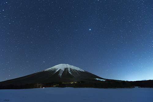 その美しさは寫真の何倍にもおよび、 きっとその場に立ち盡くし、白く浮かぶ大山、 天から降ってきそうに近くに光り輝く 星空に魅了されることでしょう。