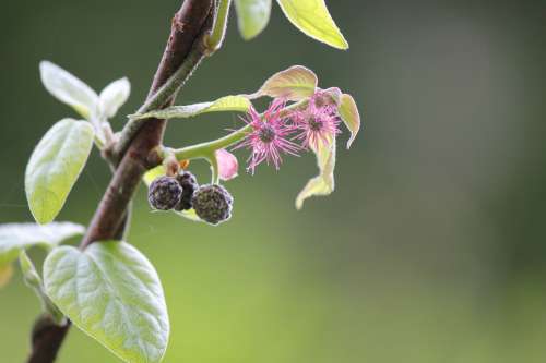 次に見つけたのはシュンラン。 10センチ位の背丈の花が咲いています。花期を過ぎると雑草にしか見えないのでこの時期に探さないと判別は難しいかも知れません。 こちらはヒメコウゾ。 雌花と雄花に分かれている木ですが放射狀に雌しべが付いているのが雌花。