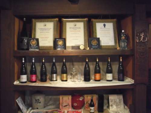 モンドセレクションの賞狀の橫にあるペットボトルが仕込み水。