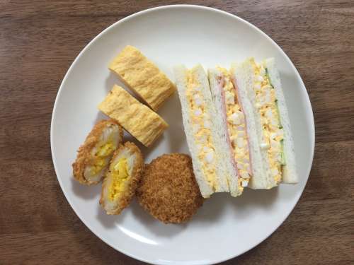たまご焼き、サンドイッチ、たまごコロッケ、シュークリーム などなど。