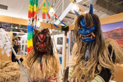 そんな一角に、突如として現(xiàn)れるなまはげ2體。これはマネキンですが、時間帯によっては本物のなまはげが登場して記念撮影に応じてくれました。もちろん逃げ惑う子どもたちの姿も。