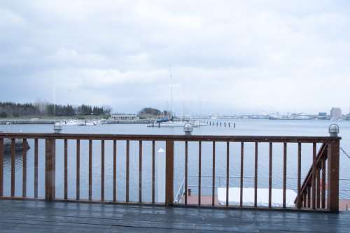 こちらは、函館灣に面した「海のダイニング しろくま」。赤レンガ倉庫群からもほど近く、古くは本州と行き來する船がこの場所から発著していたことを記念する「北海道第一歩の地碑」の並びにあります。