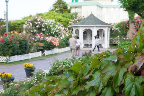 舊イギリス領(lǐng)事館に來(lái)たら、ついでに徒歩1分ほどで行ける元町公園にも立ち寄ってみましょう。この時(shí)季だけ、バラの向こう側(cè)に舊函館區(qū)公會(huì)堂が見える景色を楽しむことができます。このように、有名な風(fēng)景が限られた時(shí)季だけ違った景色になるのを探すのも街の楽しみ方のひとつかもしれませんね。