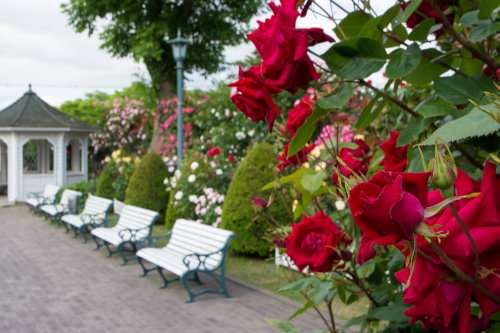 バラの種類は大変多く、花の色もさまざま。ベンチに腰かけてゆっくりと景色を楽しむ観光客も多く、また毎年この景色を?qū)懻妞藚Г幛毪郡幛嗽Lれる市民も少なくありません。