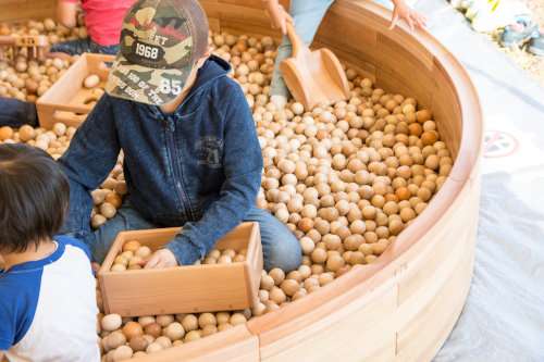 會場には子どもが遊べる木の遊具が用意されたほか、木を材料として作品を作るものづくり體験のブースがいくつも設けられました。。