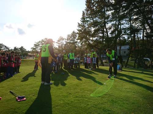 こちらはスナッグゴルフの様子です。子ども達の前でお手本を見せます。