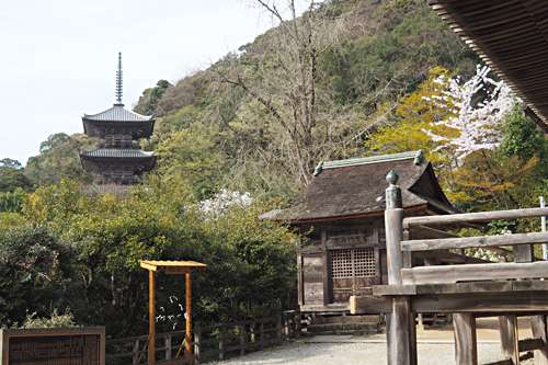 根本堂の奧に見えるのは毘沙門堂と 島根県指定有形文化財の清水寺三重塔。