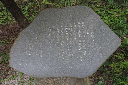石柱を通ってすぐ右手には黃泉比良坂伝説が 刻まれた石板があります...