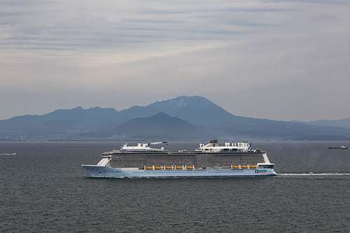 世界最大規(guī)模を誇る豪華客船 「クァンタム?オブ?ザ?シーズ」が 境港にやってきた。 まさにその大きさは 港に立つ巨大ホテルのよう。 颯爽と大山を借景に進む様は 海の王者のような貫祿でした。