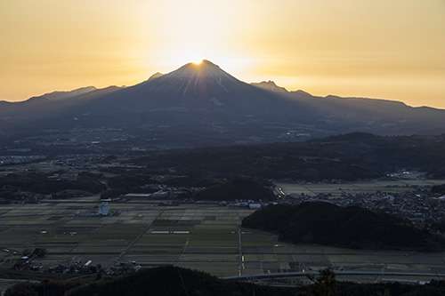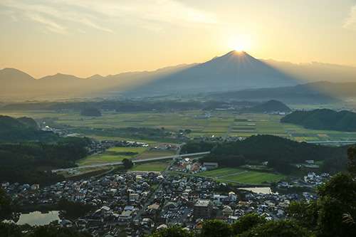 秋分の日前後となる9月中旬から下旬。 大山の山頂より陽が昇る 「ダイヤモンド大山」がこの母塚山で実現。 その瞬間見たさに早朝まだ暗いうちから 多くの人が訪れ今か今かとその風景を息をのみつつ待つ姿は このエリアの秋の風物詩ともなりつつあります。