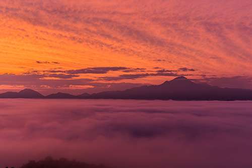 とにかく、この母塚山からの風景は、 大山を知る多くの寫真家にして 一番美しいのではないかと言わせるほど。 早朝の朝焼けに、時折発生する雲海、 そして神秘的な星空、雪をかぶった スケール感満點の雄姿まで。 一年を通じ、この場所からの大山は 訪れる人の期待を裏切らない 絶景が待ち構えています。