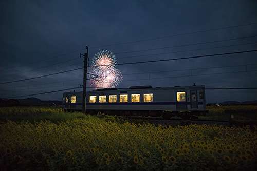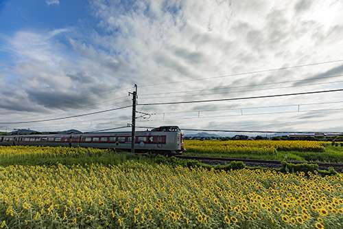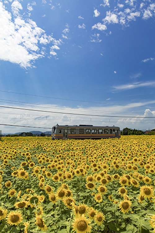 なぜに? 実はこれ、伯耆町が 「TWILIGHT EXPRESS 瑞風」に 乗られたお客様への地域のおもてなしとして 用意した花畑だそうな。 きっと、列車に乗られた多くの人が 車窓からこの風景を楽しまれるのでしょうね。。