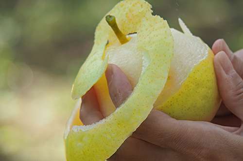 青梨はより明るく、黃みがかった緑色が 甘味と酸味のバランスが良いとのこと。