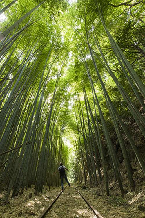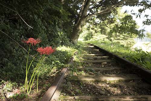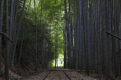 昭和60年3月31日に 廃線となった 舊國鉄倉吉線。 実は今、 郷愁を誘うトレッキングコースとして 注目を集めているのをご存知でしょうか。 特に、舊泰久寺駅奧、 まっすぐに延びる線路と 竹林のロケーションは 絶好の記念撮影ポイント。 思わず童心にかえって、 大はしゃぎしてしまうこと 請け合いです。