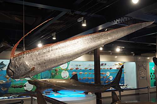 マンボウの橫には、 こちらも巨大な「リュウグウノツカイ」。