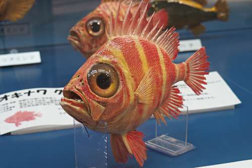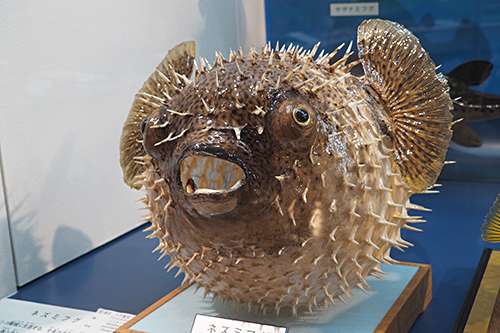 水槽の中で元気に泳ぐ魚を観察する 楽しみとはまた違い、間近でじっくりと細部まで 観察できるという、はく製ならではの楽しさがある 「海とくらしの史料館」。