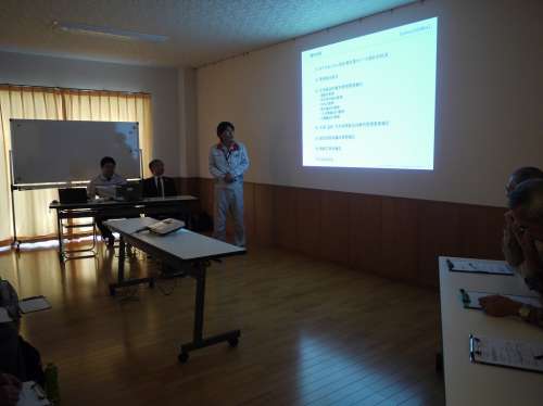 防火について、ダイワライフネクストI部長からプロジェクターを