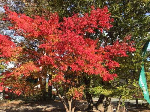 晴れた日の青空に映える赤い紅葉がとても綺麗でした